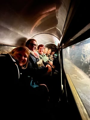 Endlich war es soweit und etwas über Dreissig Frauen aus allen Riegen des DTV Fraubrunnen setzten sich gut gelaunt, neugierig und voller Vorfreude in den Car. Das Programm war zwar geheim, aber einige verheissungsvolle Stichworte hatte das OK doch bekannt gegeben. So sollte es heute "unterirdisch", "genussvoll" und "städtlich-kulturell" werden. Ob es wohl in die Asphaltminen ging oder in die Salzsalinen oder vielleicht doch zum Lac souterain.