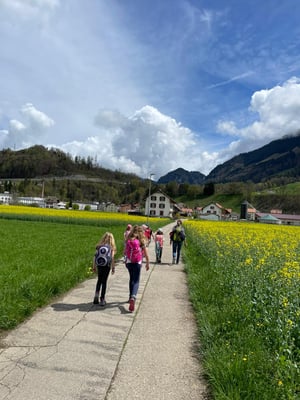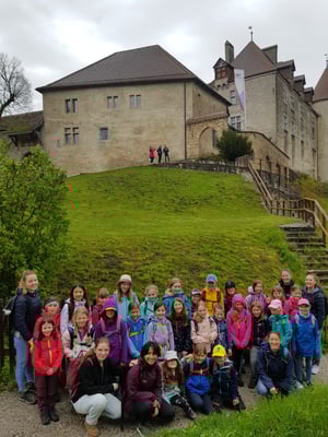Bei wunderbarem Frühlingswetter wanderten wir vom Schloss Greyerz nach Broc, wo uns eine süsse Überraschung erwartete. Der Wanderweg führte uns an gelb leuchtenden Rapsfeldern und einem tollen Spielplatz vorbei, wo wir unsere Mittagspause verbrachten. In Broc angekommen besuchten wir das Maison Cailler. Nach einer interaktiven Reise durch die Geschichte der Schokolade konnten wir die Schokoladenproduktion live verfolgen. Schliesslich wurden wir zu Schokoladentesterinnen und kosteten uns durch die verschiedensten Schokoladensorten.