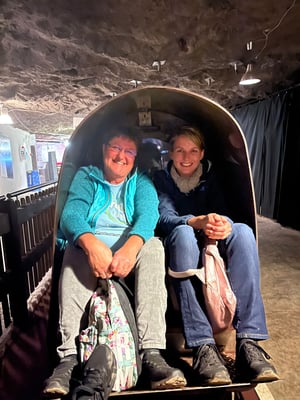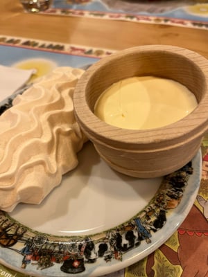 Der Genuss begann auf jeden Fall schon im Car, dort wurden wir mit Gipfeli verwöhnt. Und tatsächlich, nach einer ruhigen Fahrt, manövrierte uns die Chauffeurin gekonnt durch die engen Kurven der engen Strasse bis zum Eingang der Salzsalinen in Bex. Da wir für unsere Führung noch etwas früh dran waren, stürmten wir den Laden und suchten uns schon mal aus, welche Spezialitäten aus Alpensalz wir später kaufen wollten. Endlich wurden wir von unserem lustigen und sehr gesprächigen Führer abgeholt und durften zu Fuss die doch eher engen Gänge betreten. Während des unterhaltsamen und informativen Rundgangs erfuhren wir viel Wissenswertes über die Salzgewinnung in der Schweiz. Tief unter der Erde stiegen wir anschliessend in den Minenzug und holperten zum unterirdischen Restaurant, wo wir ein leckeres Racelette genossen. Mit Bäuchen voller Käse und Kartoffeln gelangten wir schliesslich wieder ans Tageslicht. Und mussten dann natürlich wirklich noch einiges einkaufen. Wieder im Car, konnten wir uns entspannen und verdauen. Denn es war uns ja noch ein spezielles Zvieri versprochen worden. So gelangten wir ins sehr schöne Städtchen Greyerz, wo uns - wer hätte es gedacht - Merengues mit Doublecreme serviert wurden. In kleineren Gruppen schlenderten wir durch die Altstadt und zum Schloss. Der Regen und die fortgeschrittene Zeit riefen uns wieder zu unserem Fahrzeug und in fröhlicher Stimmung traten wir die Heimreise an. Die Jungen, die nicht mehr ganz so Jungen und die etwas reiferen Damen kehten müde und zufireden wieder nach Fraubrunnen zurück.